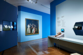 The exhibition’s campaign features a wooden model of an eye – one of the key objects on display – which appears to return the viewer’s gaze. The model eye visualizes one of the era’s central aims within the campaign: dating back to 1700, it symbolizes the Enlightenment’s pursuit of knowledge and the growing popularity of research through experimentation, including studies of the human body. Behind the image of the eye is a gradient from light blue to vibrant yellow which evokes a sunset, a distinct design element that runs consistently across all communication media, creating strong memorability.