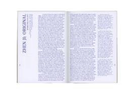 Die Buchbindung am Rücken des Katalogs greift Lee Mingweis Arbeit „The Mending Project“ auf, in welcher mitgebrachte Textilien repariert werden. Diese erfolgt im Sinne der japanischen Methode kintsugi, die im kaputten Gegenstand nicht den Makel erkennt, sondern das Potential der Reparatur betont, die von der aufgebrachten Zuwendung zeugt. Daran angelehnt wird die Bindung des Katalogs als Schweizer Broschur mit offener Fadenheftung sichtbar gemacht.